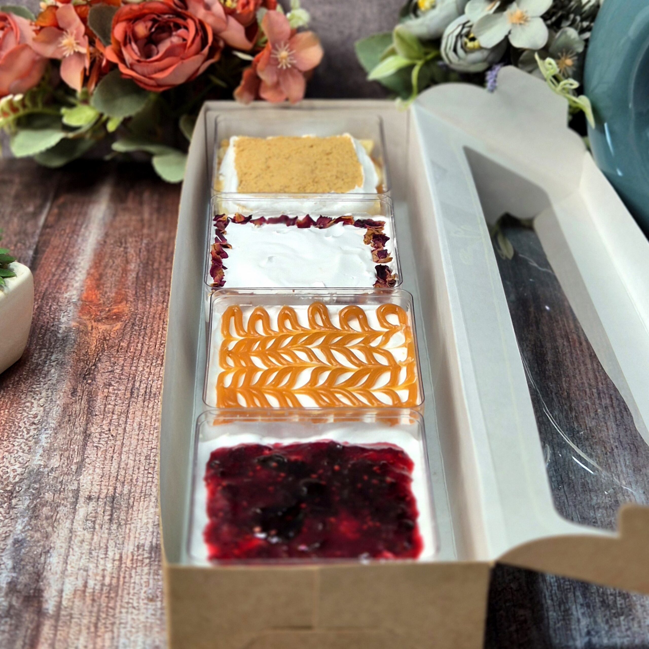 Tres Leches Assorted Box – Customizable Delight Indulge in the luxurious decadence of our Tres Leches Assorted Box, where each slice is a soft, milky dream soaked in our signature three-milk blend. Perfect for sharing, gifting, or simply treating yourself, this box lets you customize your experience with a variety of rich and unique flavors. Choose your favorite flavors or mix and match to create the perfect box for any occasion. Each piece is handcrafted to deliver an indulgent, melt-in-your-mouth experience with every bite.