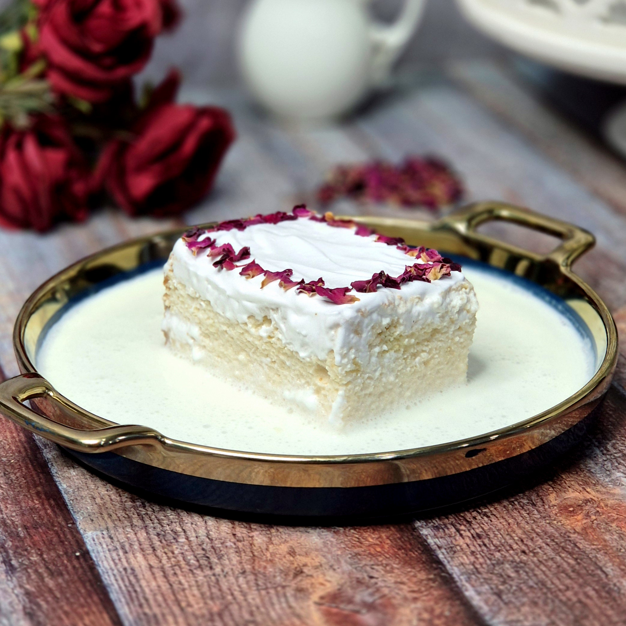 Experience the delicate and aromatic flavors of our Rose Tres Leches, a beautiful twist on the classic Latin dessert. This soft, spongy cake is soaked in a blend of three types of milk, creating a rich, moist texture. Infused with the subtle, fragrant essence of rose, it adds a floral sweetness that elevates the traditional recipe. Topped with a light rose-flavored cream, this dessert offers a luxurious and refreshing taste that’s perfect for any special occasion.